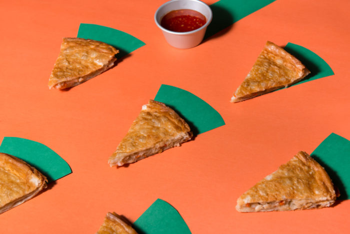 2、在鍋內稍微旋轉餅皮,讓餅面受熱均勻、簡單煎出整面金黃色餅皮。